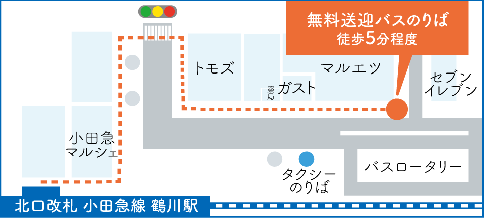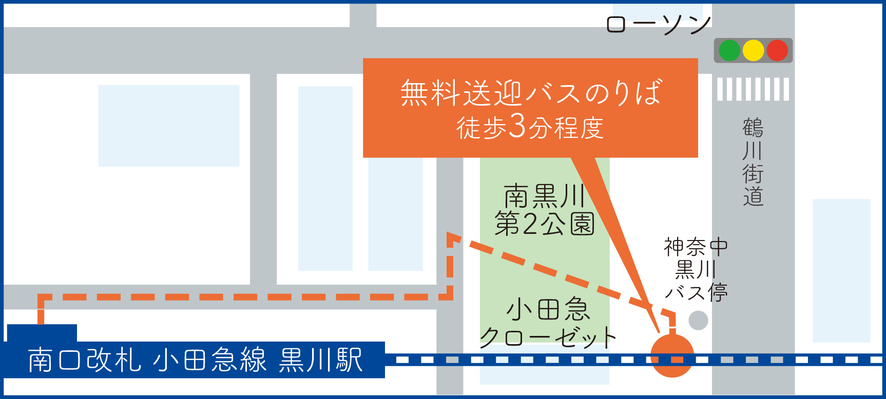 当院では、小田急線 鶴川駅、京王相模原線 若葉台駅、小田急多摩線 黒川駅から病院専用の無料送迎バスを運行しております。