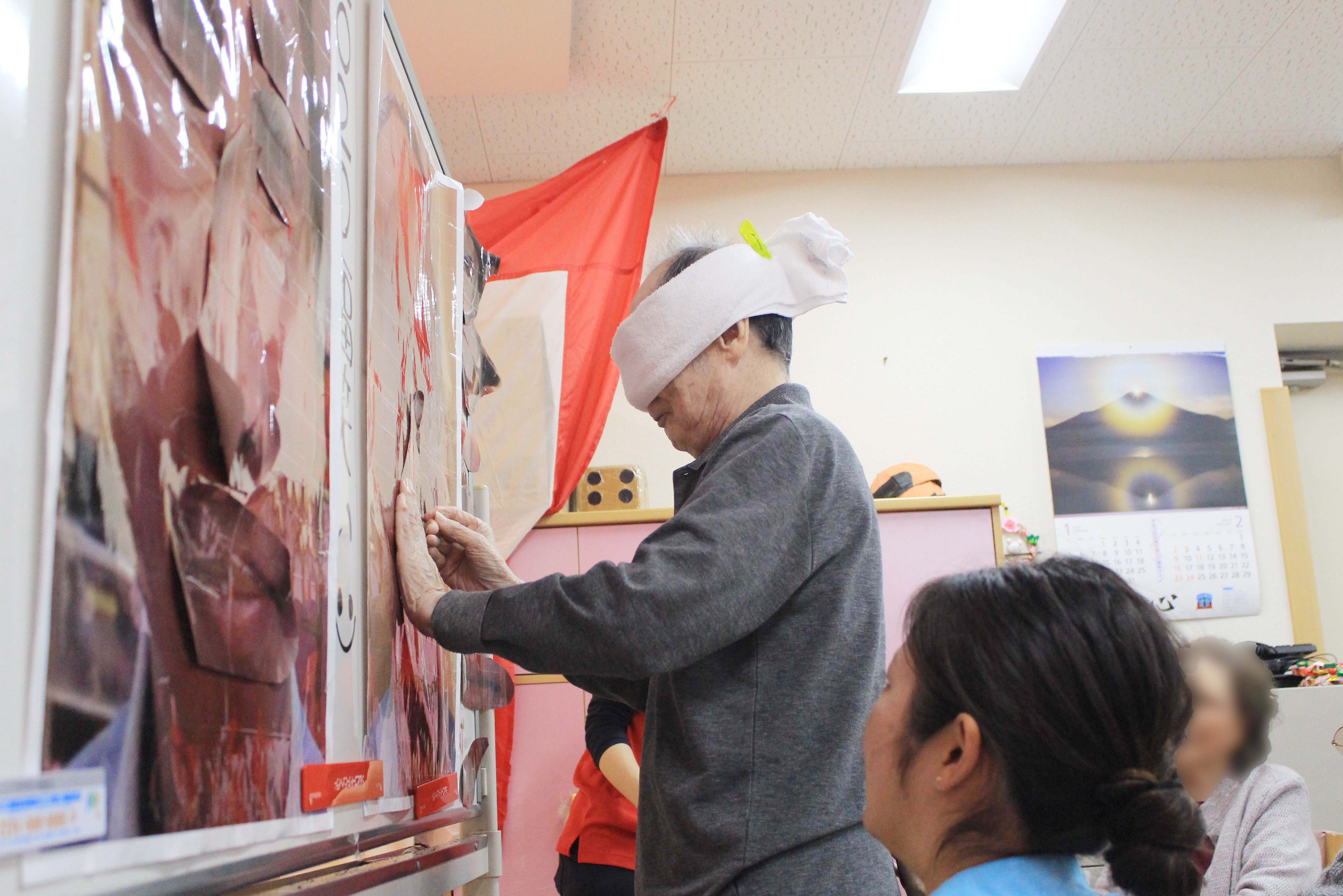 通所内は紅白幕で覆われ、