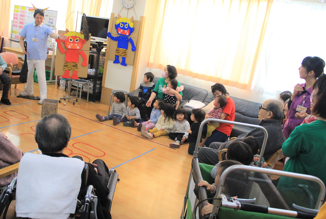 子供たちは、まめまきの歌をプレゼントしました。