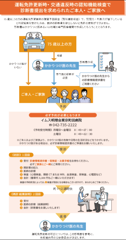 運転免許更新の前に受ける認知機能検査、または交通違反時に受ける臨時の認知機能検査で、診断書の提出を求められた方、またそのご家族の方はこちらをお読みください。