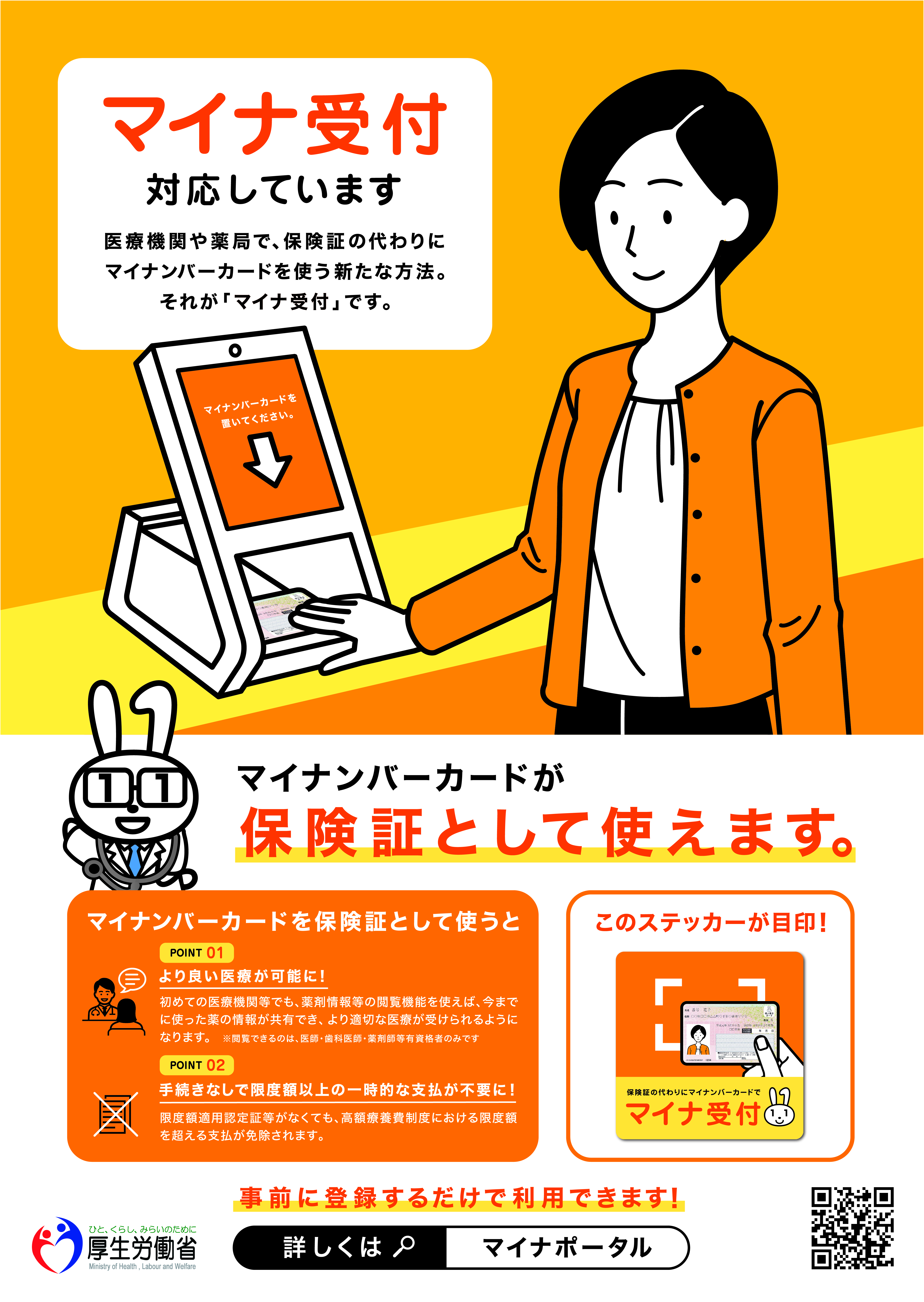 当院では「マイナンバーカード」を健康保険証の代わりとして利用いただけるシステム「マイナ受付」を開始いたします。