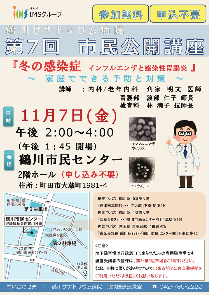 当院が持つ医療の知識を地域に開放し、医療や病状への正しい理解を深めていただき、地域の方々の健康増進、疾病予防及び当院スタッフと地域の方々との交流を深めることを目的としています。