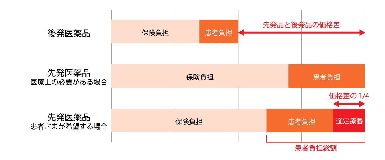2024年10月1日より、後発医薬品がある薬に対し、患者様が先発医薬品の処方を希望された場合は、選定療養費として差額の一部をご負担いただきます。