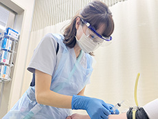 当院では、外来・入院患者さまの採血は検査技師が担当しています。また、血液培養検査の採血も検査科が担っています。検体検査や生理機能検査のほか、内視鏡検査の介助も行なっています。